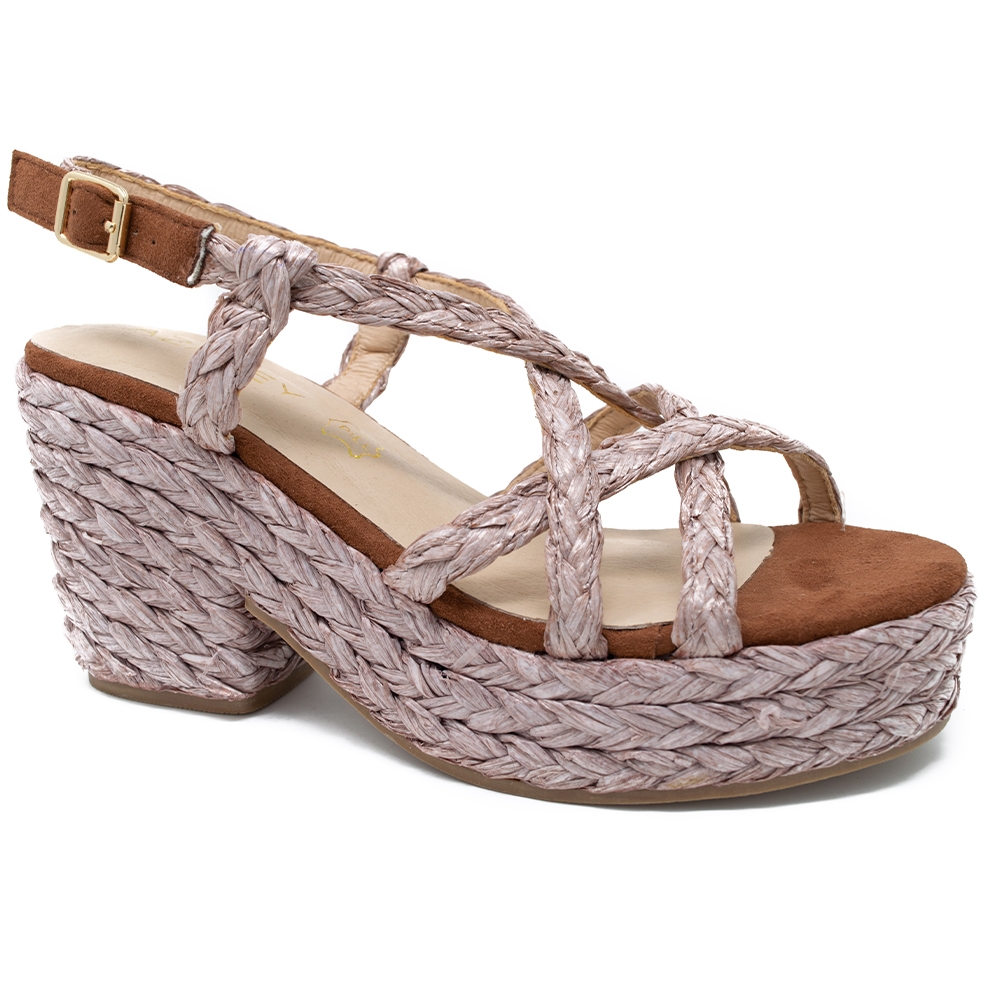 SANDALIA TACON ESPARTO CON TIRAS TRENZADAS EN ESPARTO Y CIERRE CON HEBILLA AL TALON