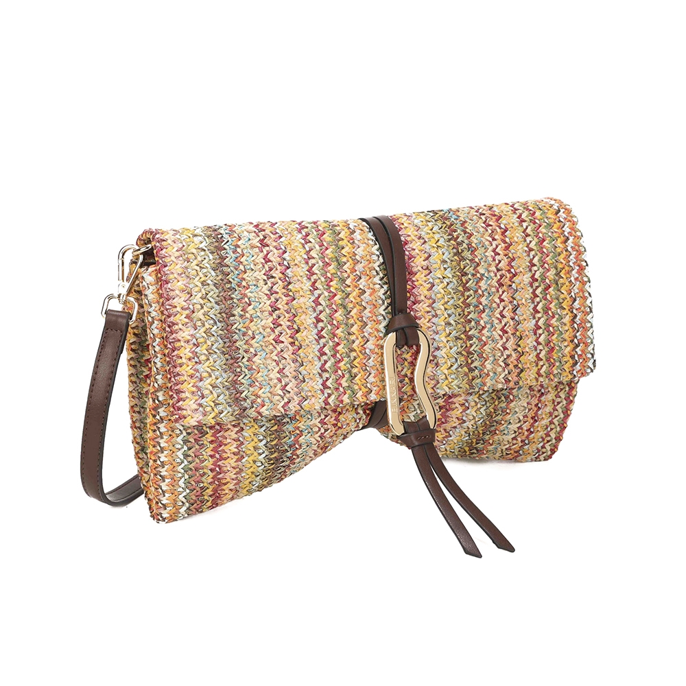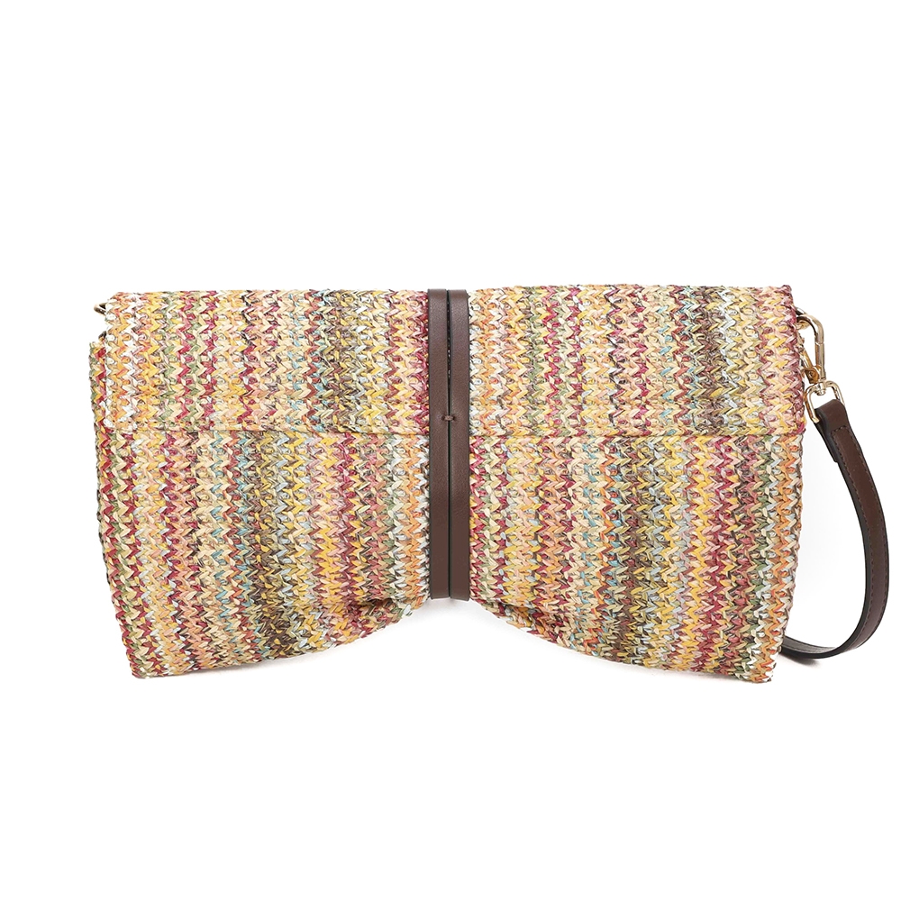 ¡La cartera de mano que sí o sí tienes que tener para esta temporda de Verano! De tamaño mediano y confeccionada en rafia y detalles en pu. Está disponible en 3 colores. Puedes llevarla además de bandolera, ya que tiene un asa ajustable en su interior. Los detalles metálicos son de color oro claro.