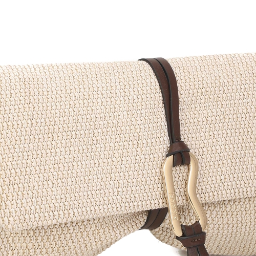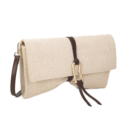 ¡La cartera de mano que sí o sí tienes que tener para esta temporda de Verano! De tamaño mediano y confeccionada en rafia y detalles en pu. Está disponible en 3 colores. Puedes llevarla además de bandolera, ya que tiene un asa ajustable en su interior. Los detalles metálicos son de color oro claro.