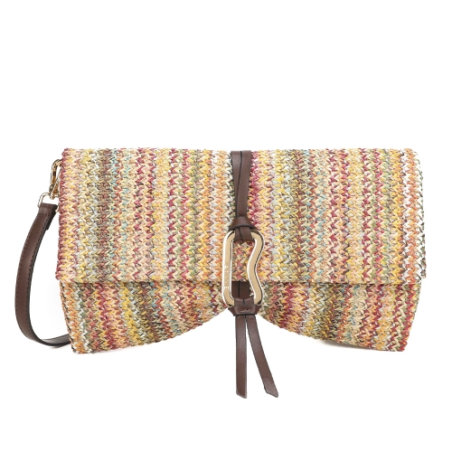 ¡La cartera de mano que sí o sí tienes que tener para esta temporda de Verano! De tamaño mediano y confeccionada en rafia y detalles en pu. Está disponible en 3 colores. Puedes llevarla además de bandolera, ya que tiene un asa ajustable en su interior. Los detalles metálicos son de color oro claro.