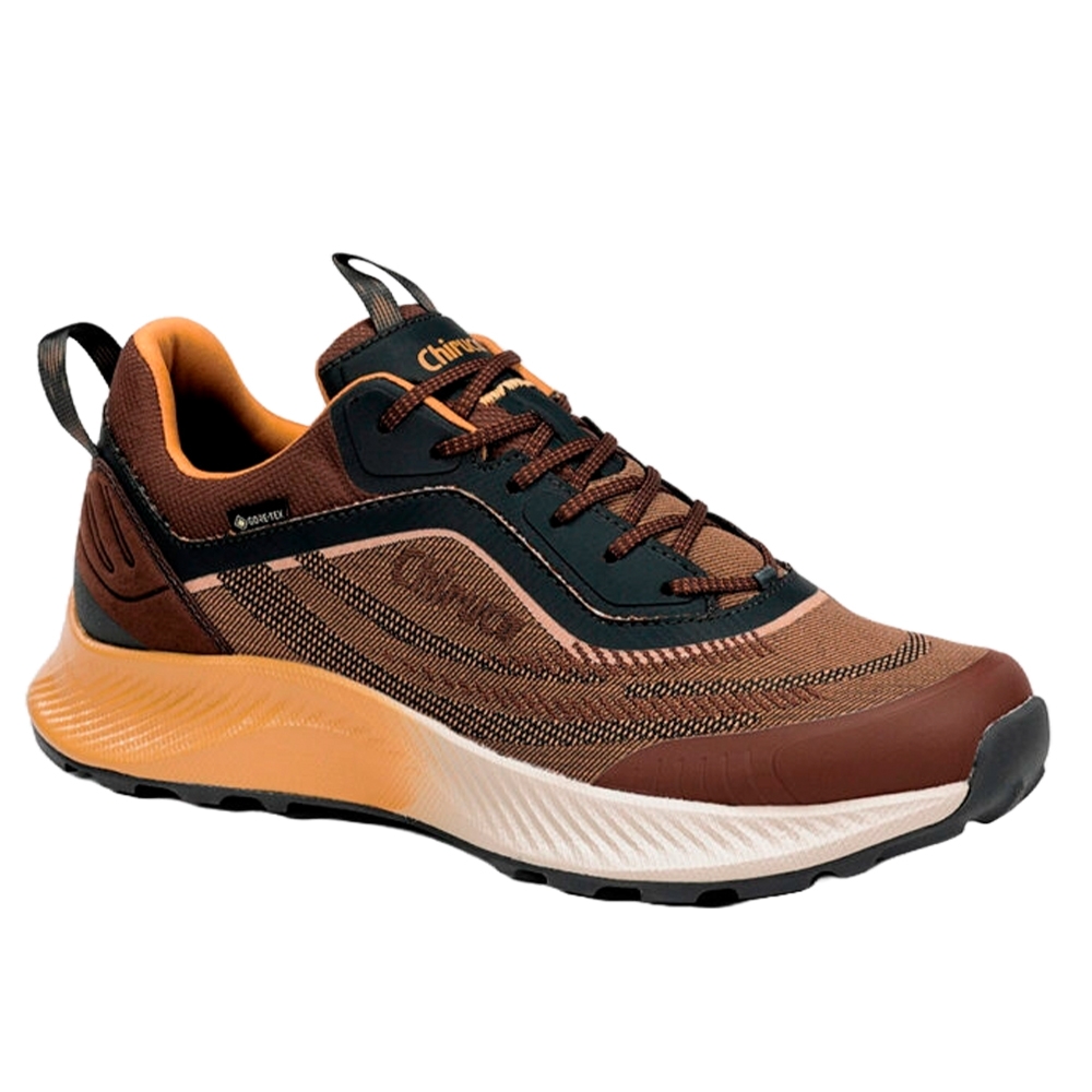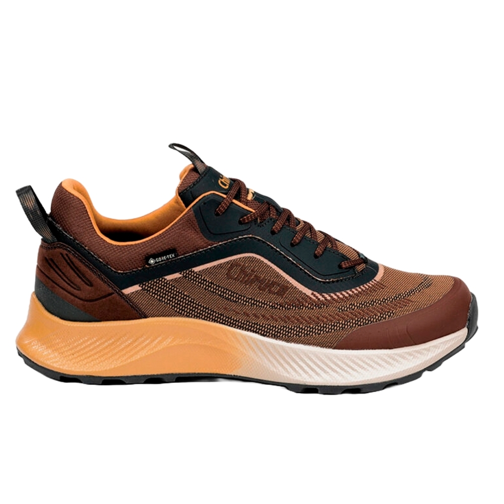 Un zapato de material sintético, detalles en alta frecuencia, refuerzo en puntera y trasera, membrana Gore-Tex impermeable y transpirable suela dos densidades con entresuela de phylon y suela de goma que proporciona amortiguación y comodidad.
