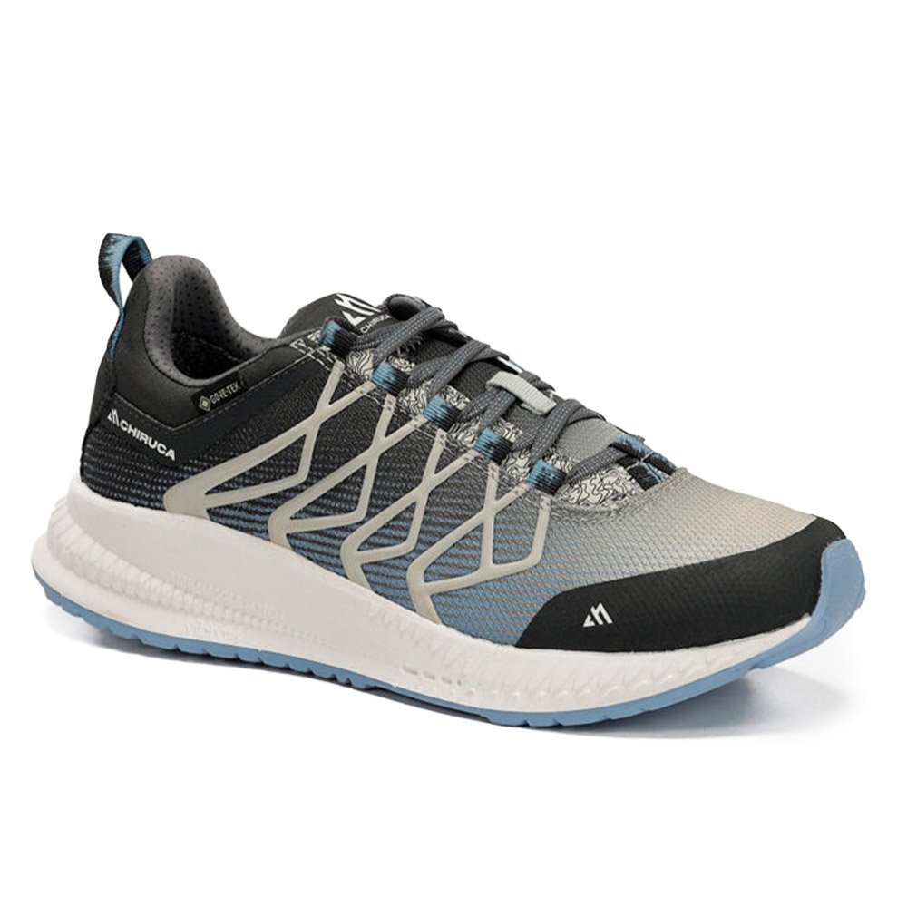 Modelo textil, detalles en alta frecuenia, refuerzo en puntera, con membrana Gore-Tex impermeable y transpirable con entresuela phylon y suela Vibram® Cono con compuesto Megagrip que proporciona amortiguación y gran adherencia.