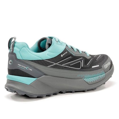 Adecuada para terrenos poco escarpados y senderos. Modelo textil, refuerzo en puntera, membrana Gore-Tex impermeable y transpirable con entresuela phylon y suela de goma que proporciona amortiguación.
