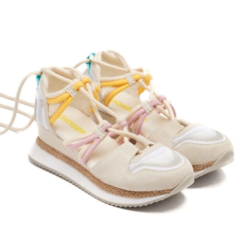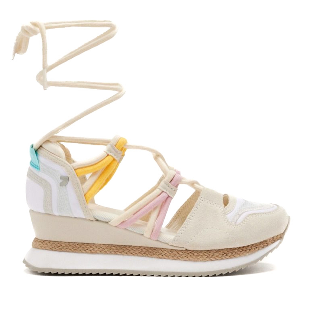 Sandalias deportivas de piel con cuña de rafia y planta acolchada. Atadas con tiras. Altura cuña: 5,5 cm.Composición: