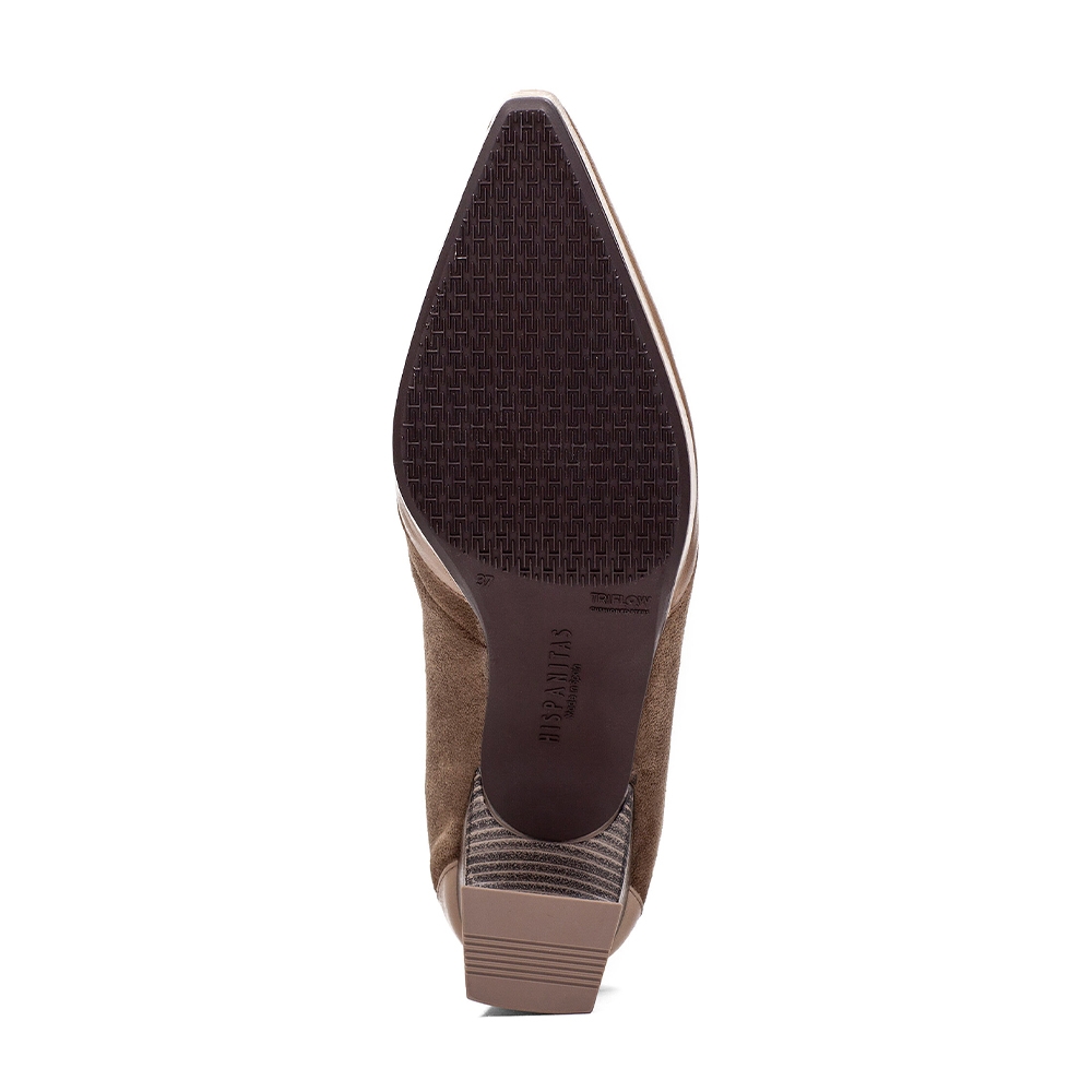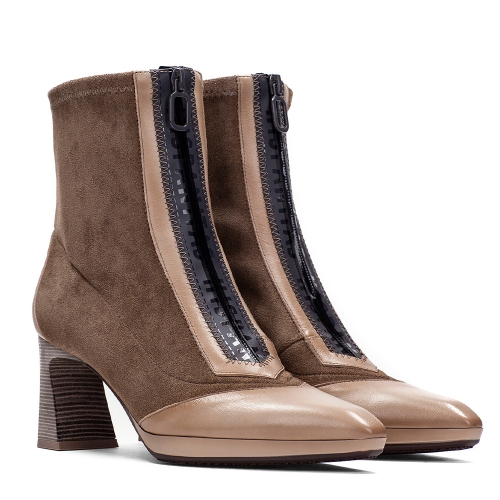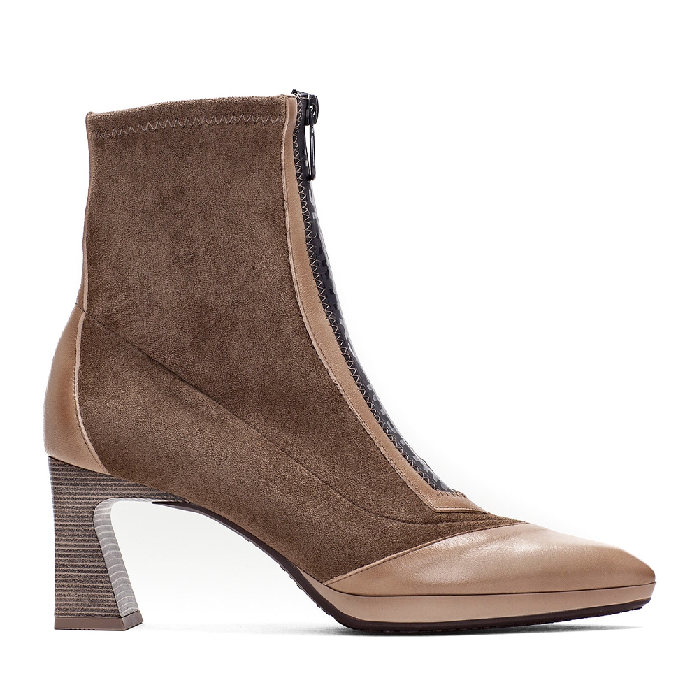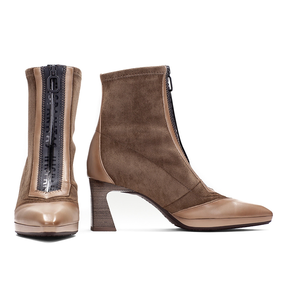 Botín de punta afilada con detalle de cremallera estanca que facilita el calce.