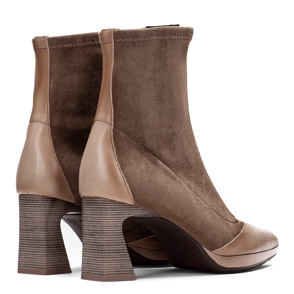 Elaborado en piel combinada con tejiido elástico.