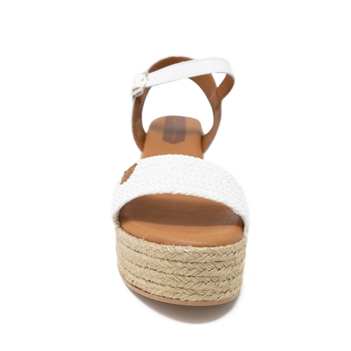 Comodidad y elegancia son sinónimos en el modelo Arnia y es que ambos términos describen a esta magnífica cuña tacón. En material yute y diferentes materiales en su tira delantera y trasera.