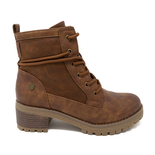 Botín estilo militar de mujer, de la marca Refresh. Fabricado en material que imita la piel. Cremallera lateral y tirador trasero para facilitar la puesta. Ajusta los cordones alrededor del tobillo para darle un toque diferente y en tendencia. Tacón de 5 cm con suela dentada de goma antideslizante. Ideales para un look casual.