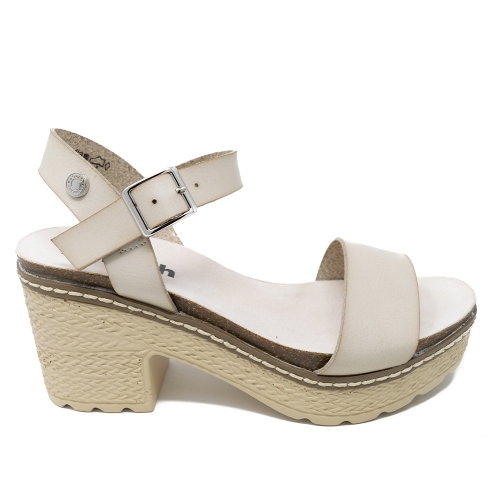 Diseño de pala y pulsera con cierre de hebilla. Planta bios y tacón ancho de 8 cm con plataforma delantera de yute. Suela de goma antideslizante. Un modelo que podrás combinar con todos tus looks de la temporada. Este modelo ha obtenido el certificado vegano por la organización mundial PETA (Organización de los derechos de los animales).
