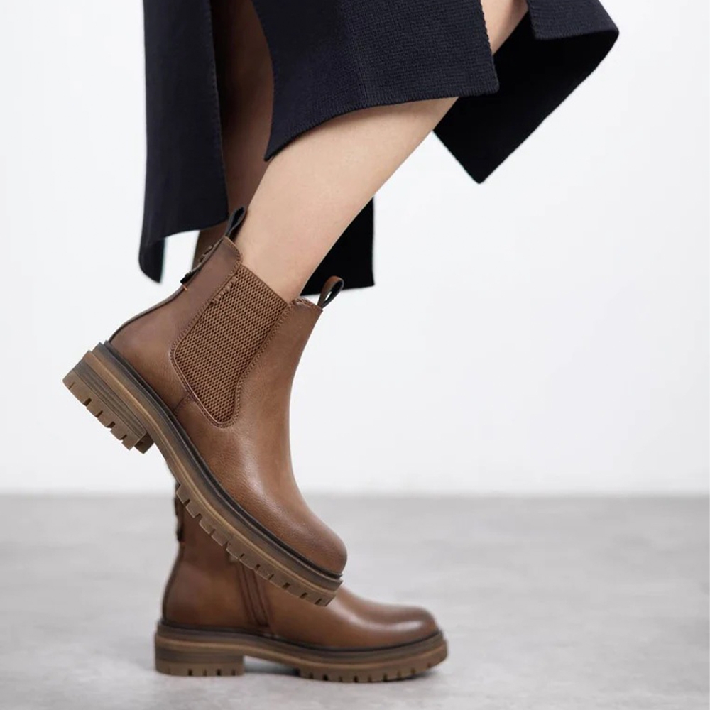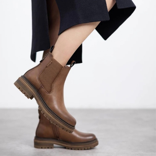 Botín de mujer, de la marca Refresh. Fabricada en material que imita a la piel. Botín tipo chelsea con cremallera interior. Tirador delantero y trasero para facilitar la puesta. Cierre mediante cremallera interior. Gruesa suela de goma antideslizante. Con plantilla extraíble. Este modelo ha obtenido el certificado vegano por la organización mundial PETA (Organización de los derechos de los animales).