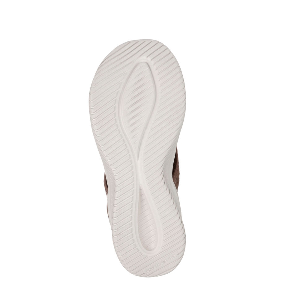 Disfruta de los días soleados con comodidad ecológica con las Skechers Hands Free Slip-ins®: Ultra Flex 3.0 - Sun Warmth. Fabricadas con materiales reciclados y diseñadas con nuestra tecnología Touchless Fit ®Heel Pillow™, estas sandalias con tira trasera presentan una parte superior de malla con banda en H y una plantilla acolchada Yoga Foam®. Our Planet Matters®: bueno para tus pies. Bueno para el mundo.®