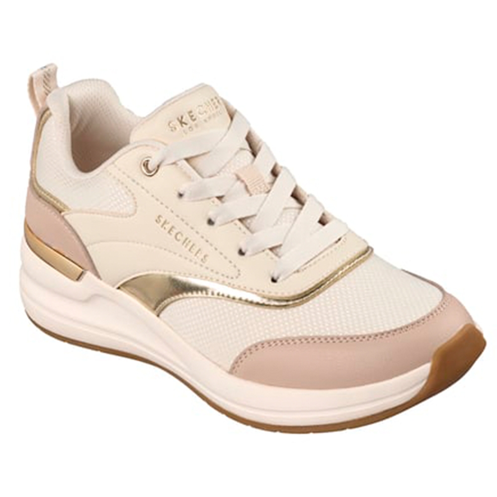 Brilla con estilo deportivo con las Skechers Street™ Billion 2 - Monroe. Estas zapatillas de moda Wedge Fit® cuentan con una parte superior de malla y duraleather con cordones, ribete metálico y clip en el talón, además de una plantilla Skechers Air-Cooled Memory Foam®.