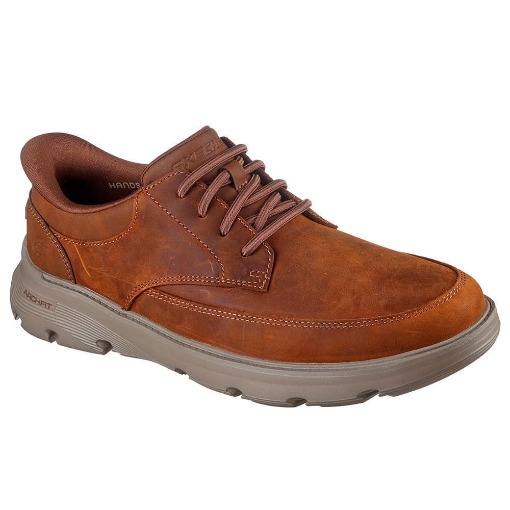 Pasa del look de ofician al de salir a cenar fácilmente con las Skechers Hands Free Slip-ins® Relaxed Fit®: Arch Fit® Garza - Rowan. Diseñado con nuestra exclusiva Heel Pillow™, este modelo de negocios casual ha recibido el sello de aceptación de la APMA y cuenta con una parte superior de piel y material sintético con cordones elásticos fijos y una plantilla Air-cooled Arch Fit®.