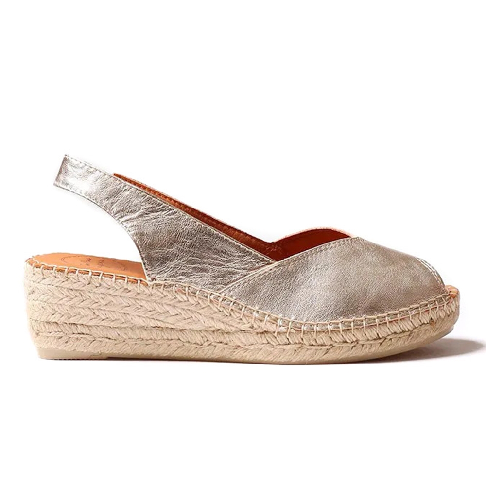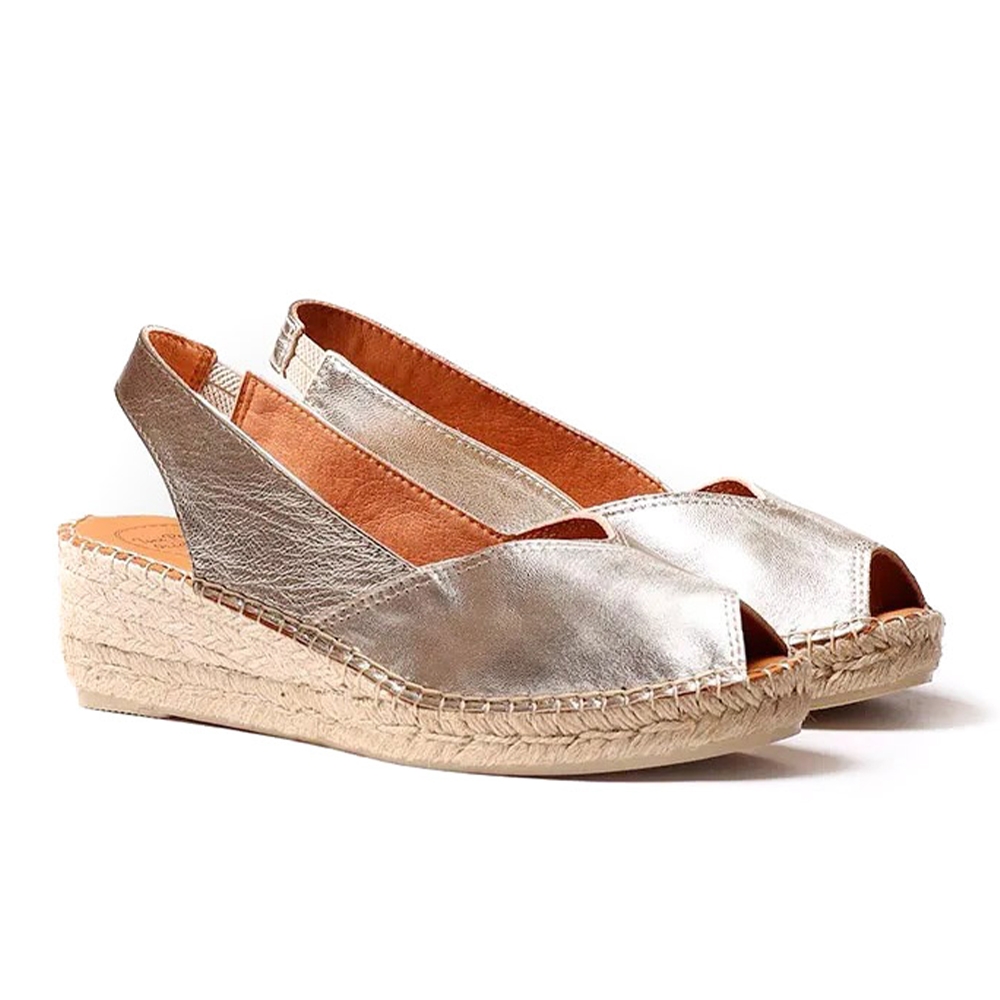 BERNIA-P es una alpargata para mujer con cuña estilo peep toe elaborada en piel en tonos lisos y con forro de textil transpirable. La cuña de yute tiene una altura total de 5 cm, de los cuales 3 cm pertenecen al tacón y 2 cm a la suela. La base de la suela es de goma antideslizante. La planta interior es de piel y la tira trasera cuenta con un elástico interior para un ajuste perfecto al pie. Este modelo se elabora en colores lisos. Este diseño está cosido a mano en España.