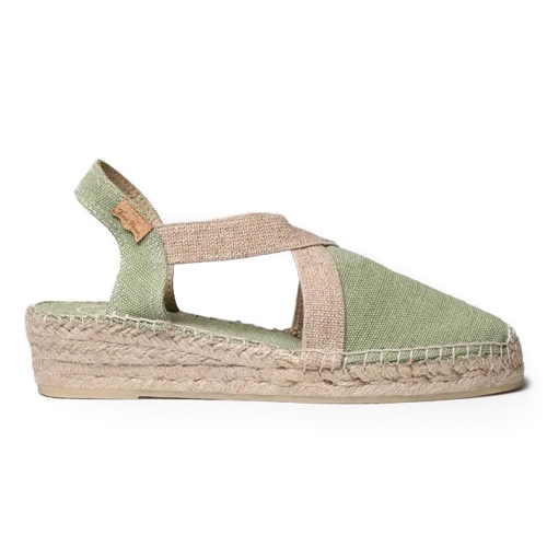 VERDI-V. Esta alpargata vegana plana para mujer se elabora en tejido de algodón en tonos lisos. La cuña de yute tiene una altura de 4 cm. La base de la suela está hecha de goma antideslizante. Cuenta con dos tiras elásticas contrastadas que dan una sujeción óptima al pie. La suela interior está forrada en tejido para mayor comodidad. Este diseño está cosido a mano en España. Es un modelo vegano.