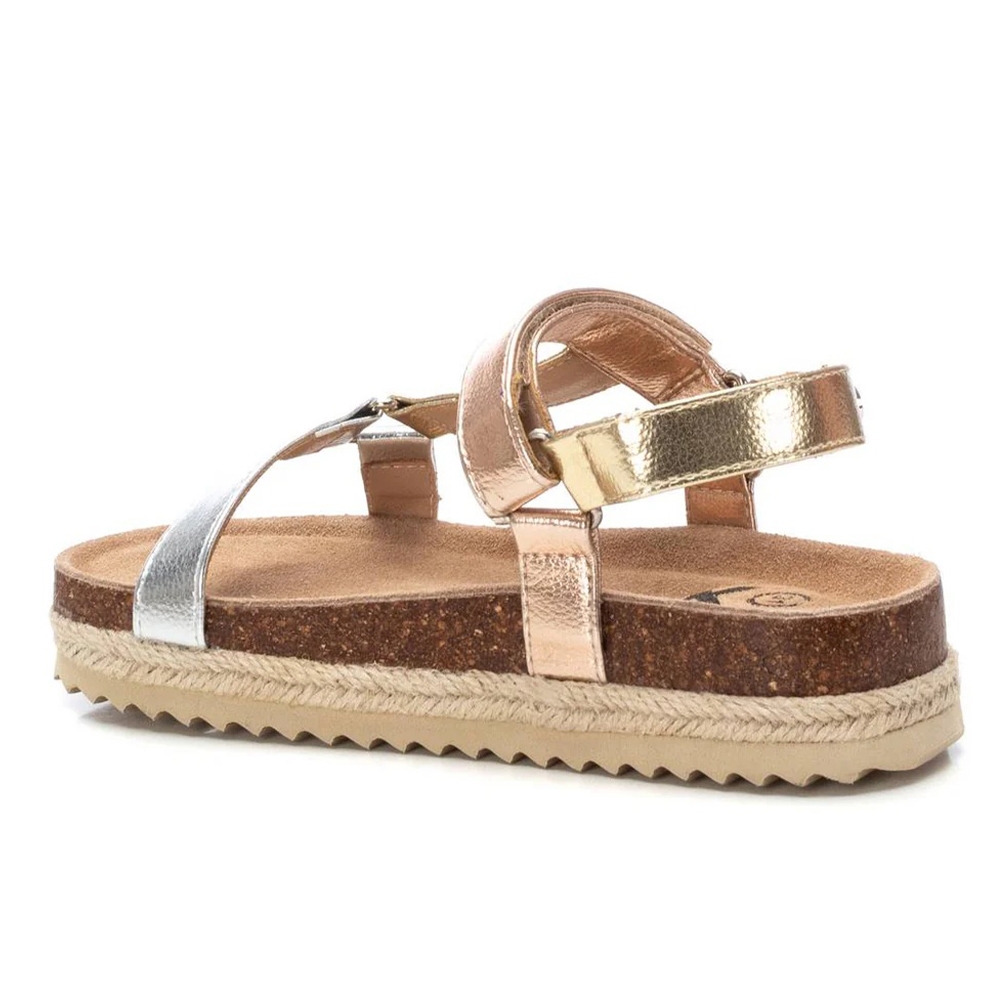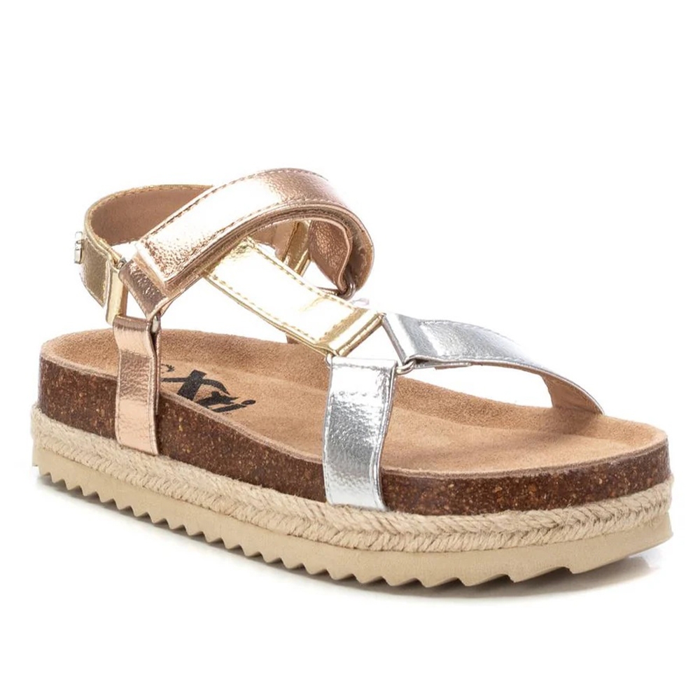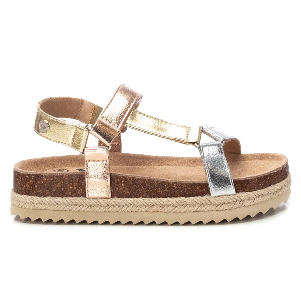 Sandalia multicolor de niña, de la marca Xti Kids. Fabricada en una suave antelina. Cierre mediante tira adherente. Plataforma rodeada por tira de yute con suela de goma antideslizante. Una sandalia ideal para completar tus looks más veraniegos esta temporada.