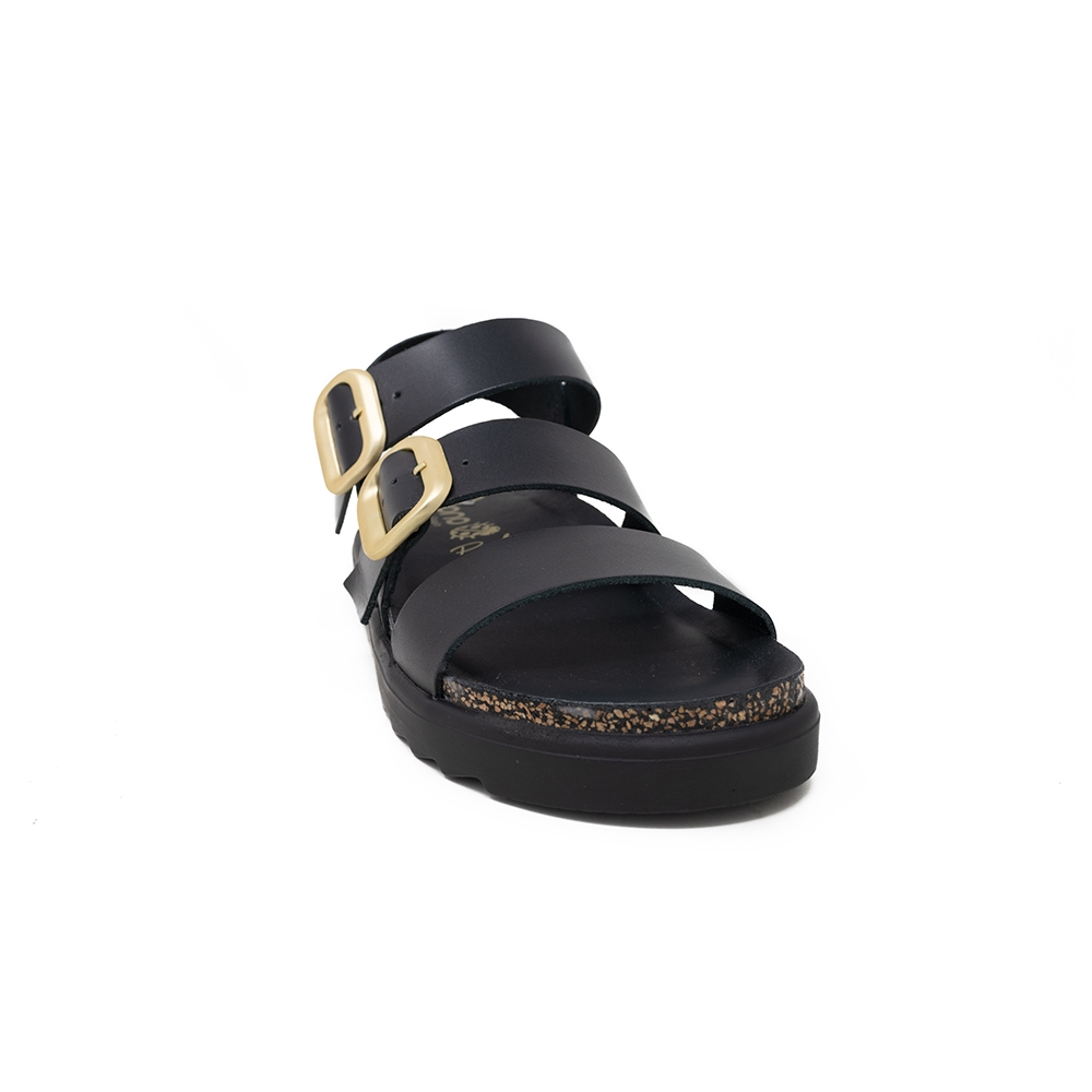 La sandalia de plataforma TUNEZ 127 en negro: cómoda, sencilla y elegante. Diseñada para todas aquellas que buscan seguir un estilo minimalista de la mano de Yokono. Cierre de hebilla, plataforma de 4 cm y una plantilla antideslizante que garantiza el agarre del pie. Está elaborado de manera artesanal en España, material de piel y uso de tintes vegetales respetuosos con el medio ambiente