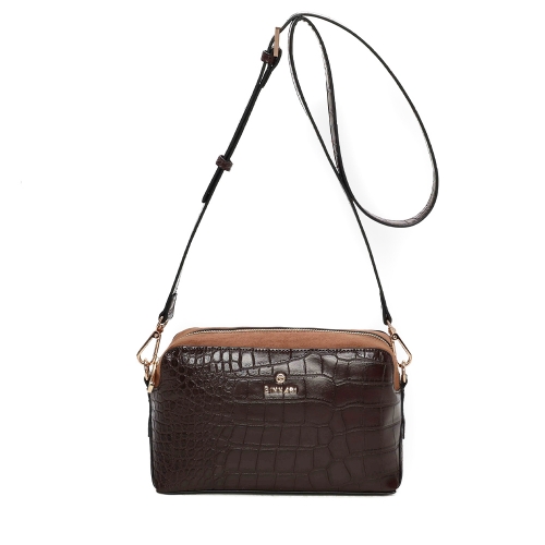 ¡La bandolera que no podrá faltar esta temporada en tu armario! Disponible en 3 colores, todos ellos muy combinables. Asa ajustable. Se accede al interior por medio de una cremallera superior. En él, encontramos diversos bolsillos, uno de ellos con cremallera. Detalles metálicos en color oro claro.