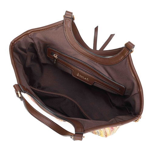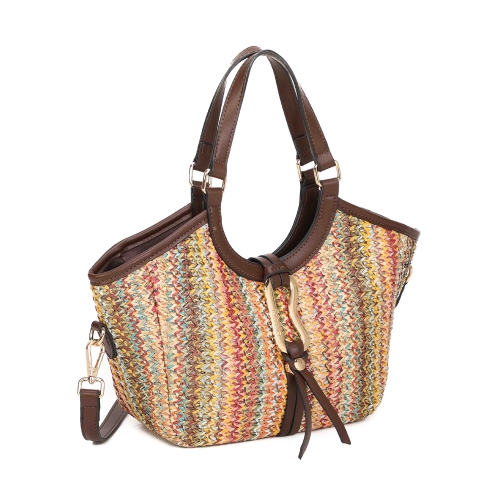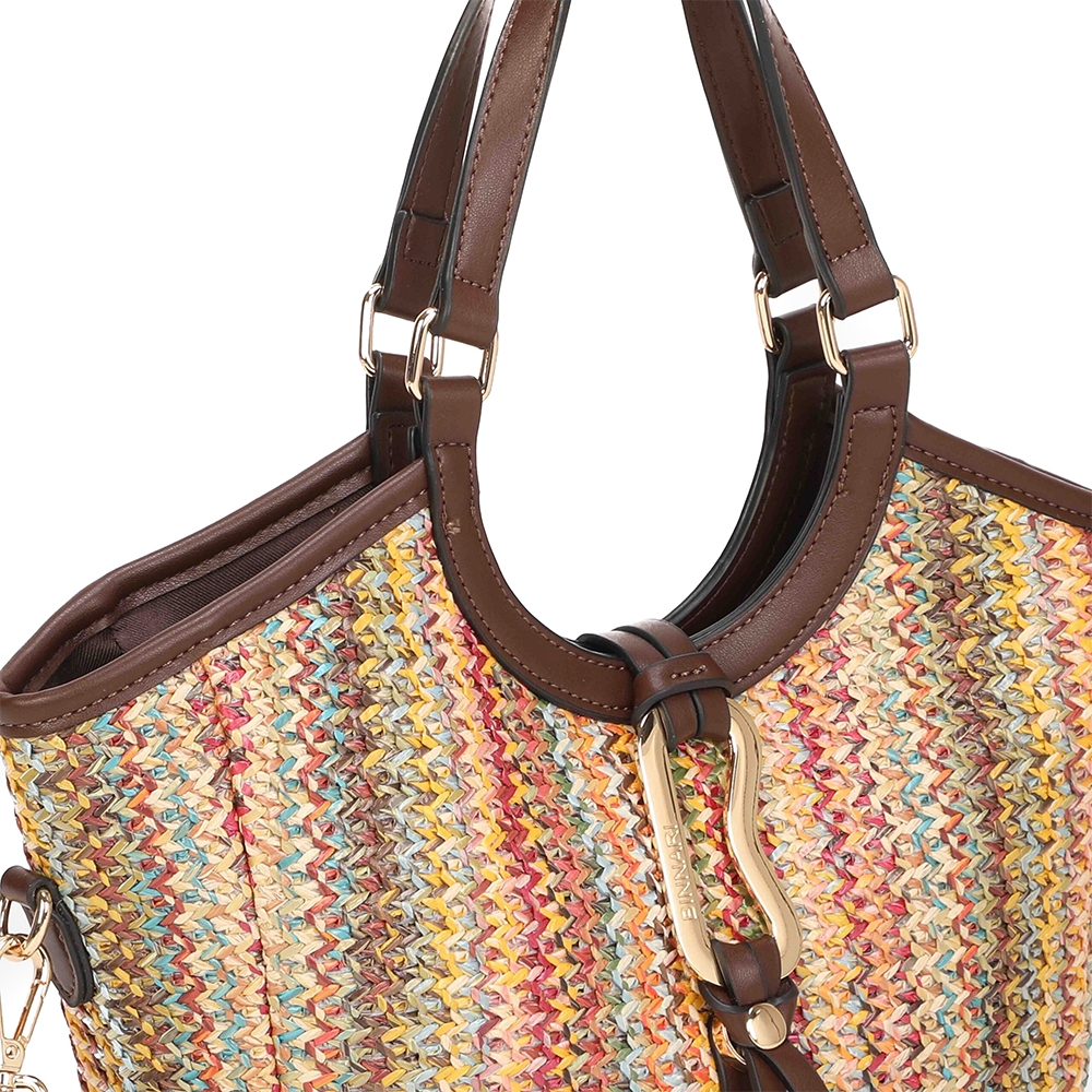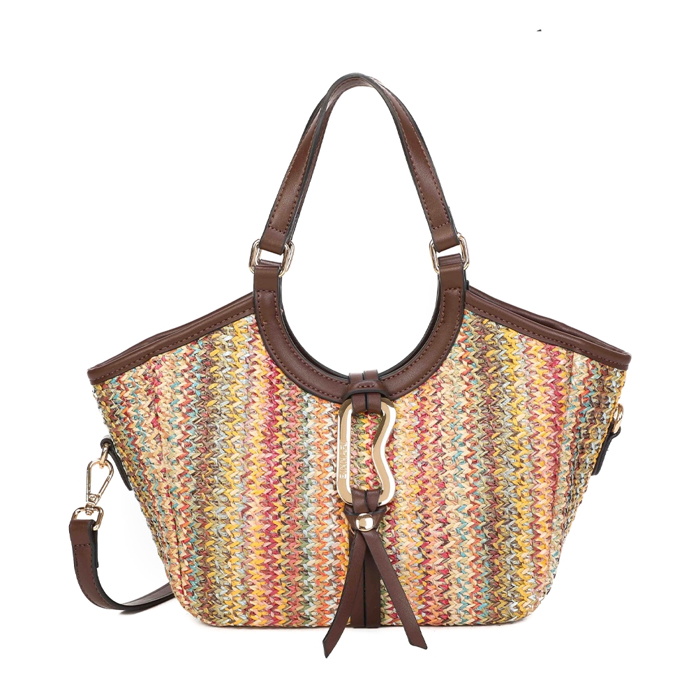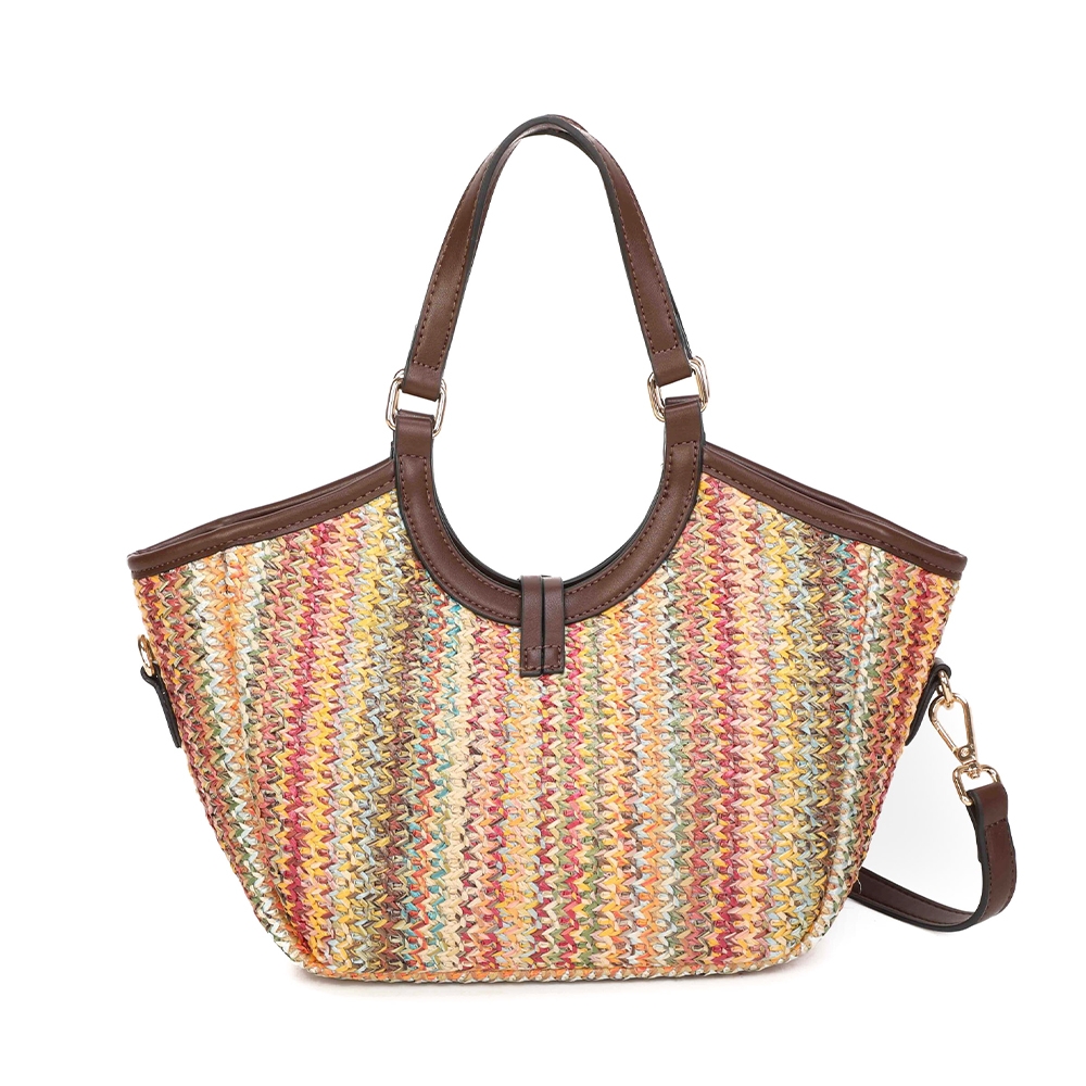 Uno de los bolsos tendencia de esta temporada, el bolso de mano pequeño Lina. Está confeccionado en rafia y detalles en pu. Tiene 2 posiciones: mano y bandolera. Exterior tiene cierre con B. Los detalles metálicos son de color oro claro. No te quedes sin el tuyo!