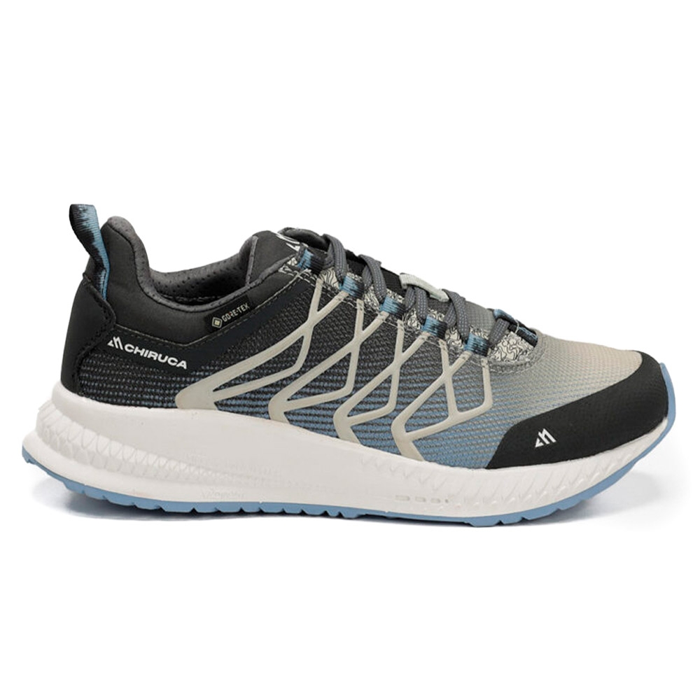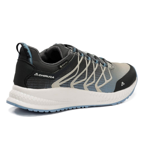 Modelo textil, detalles en alta frecuenia, refuerzo en puntera, con membrana Gore-Tex impermeable y transpirable con entresuela phylon y suela Vibram® Cono con compuesto Megagrip que proporciona amortiguación y gran adherencia.