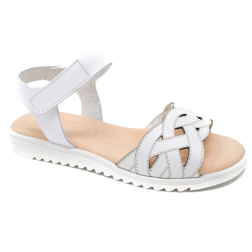 Sandalia de niña  totalmente en piel hecho en España con planta de gel y cierres con hebilla al tobillo.