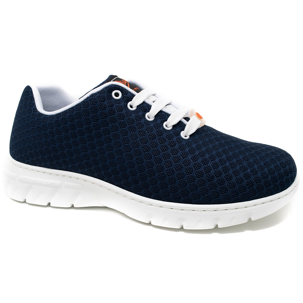 Zapatilla tipo blucher con corte de una sola pieza, sin costuras y con cierre de cordones. Corte textil transpirable y repelente a liquidos D’COVER DRY®, forrado interior de material textil acolchado D’DRY®, collarín acolchado en el tobillo para evitar rozaduras. Horma recta de puntera redondeada. Contrafuerte de dureza suficiente para sujetar el calcáneo. Plantilla acolchada de material textil sobre espuma de poliuretano termoconformado con tratamiento antibacterias y carbón activado. Suela de material compuesto EVA XL EXTRALIGHT®, ultra ligera, confortable, flexible y antideslizante, con diseño de pastillas planas, cantos vivos y acanaladuras amplias para facilitar la evacuación de líquidos. Apto para lavado en lavadora hasta 40º.