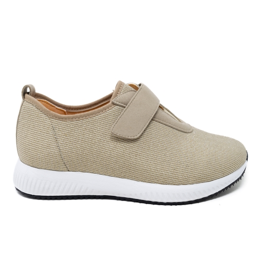 Deportivo para mujer con acabado textil de color tabaco efecto brillo, cierre de velcro y plantilla extraíble.