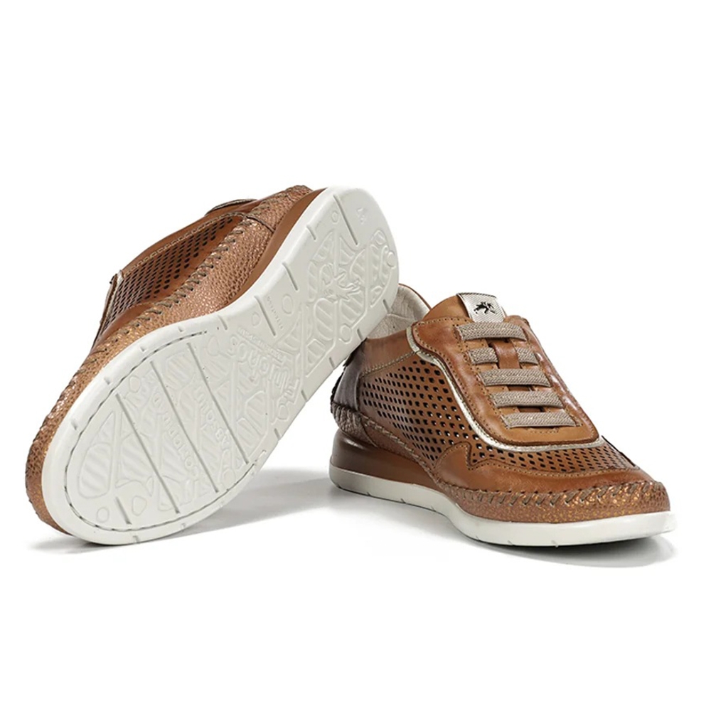 Sella combina estilo y confort en un diseño con ligera cuña ideal para los días de verano. Su construcción Kiowa ofrece flexibilidad y comodidad, mientras la plantilla extraíble se adapta a cada paso. El piso con tecnología Light aporta una sensación de ligereza única. Con detalles metalizados y un aire deportivo, es la opción perfecta para un look fresco y actual.