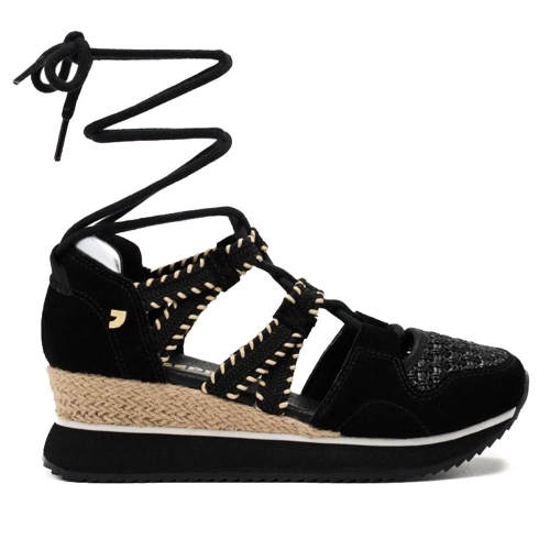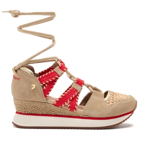 Sandalias deportivas de piel con cuña de rafia. Cuentan con planta acolchada. Atadas con tiras. Altura cuña: 5,5 cm.Composición: