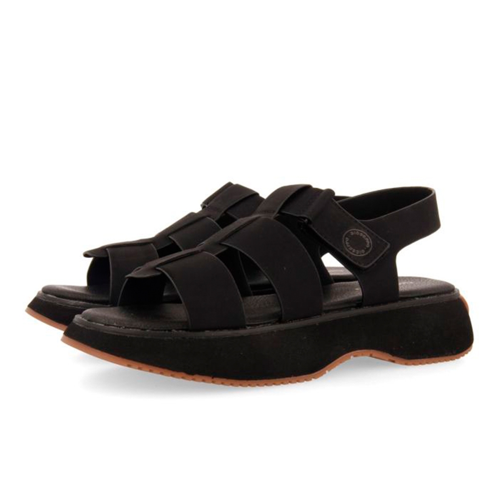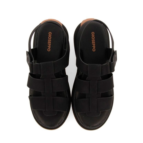 ¡Súper cómodas! Sandalias deportivas negras tipo cangrejera con cierre ajustable en el talón. Cuentan con suela con volumen y curvas con combinación de piezas en diferentes tonos y materiales. La plantilla es acolchada. Descubre las novedades de la temporada en sandalias abiertas en Gioseppo Woman.