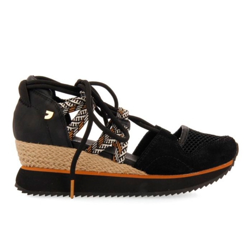 ¡Reinventamos un clásico Gioseppo! Sneakers abiertos negros tipo espadrille combinadas con cordones de distintos tonos. Cuña combinada en EVA de colores y forrada en yute. Plantilla acolchada para un mayor confort. La hilatura de los tejidos que utilizamos en la fabricación del forro y plantilla de este modelo tiene el sello de garantía certificada Global Recycled Standard (GRS). Descubre las novedades de las sandalias deportivas mujer de la temporada en la nueva colección de Gioseppo Woman.
