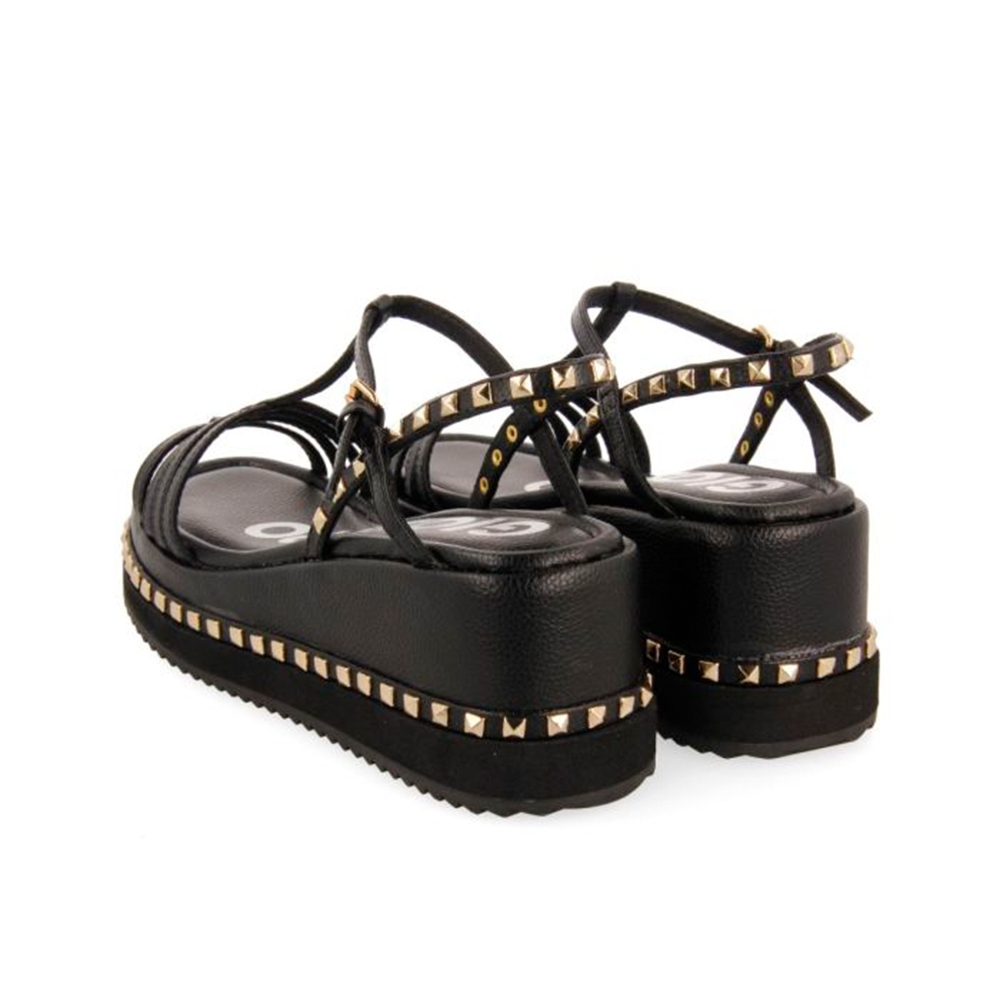 Black is back! Sandalias negras con plataforma y detalles de tachuela en tiras y plataforma. Cierre con hebilla al tobillo. Planta acolchada para un mayor confort. No te pierdas las novedades en sandalias de plataforma de Gioseppo Woman.