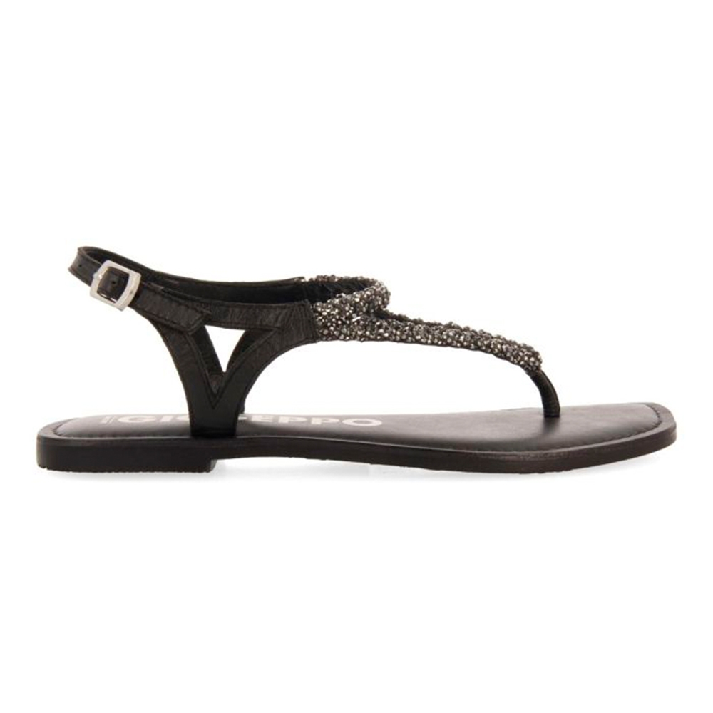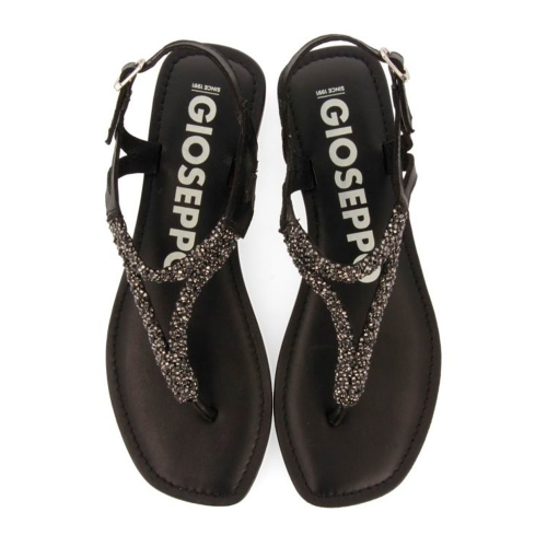 ¡Brillo 24h! Sandalias negras de piel con detalle de pedrería en tiras y cierre ajustable con hebilla. Forro en piel. Plantilla de piel muy acolchada de látex para un mayor confort. Piso flexible. Descubre las novedades en sandalias de SS24 de Gioseppo Woman.