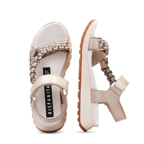 Tiras en piel con detalles trenzados multicolor de macramé.