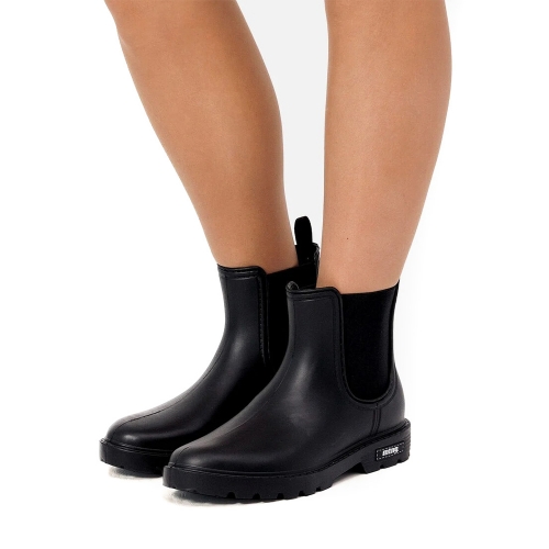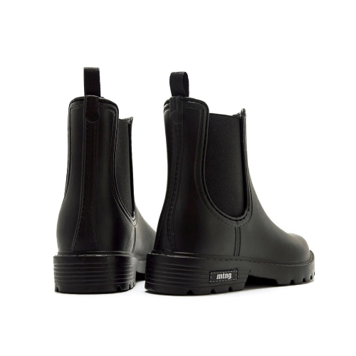 Botines de agua planos de color negro para mujer, modelo Halo de la marca Mustang estilo chelsea. Su diseño minimalista con laterales elásticos en el mismo tono crea un acabado versátil y fácil de combinar. La suela con relieve aporta confort, ideal para el uso diario. Este botín se convierte en una opción práctica para looks informales y jornadas de entretiempo, ofreciendo un estilo sencillo que nunca pasa de moda.