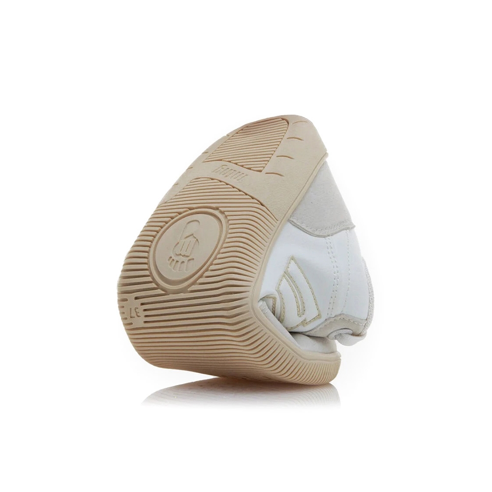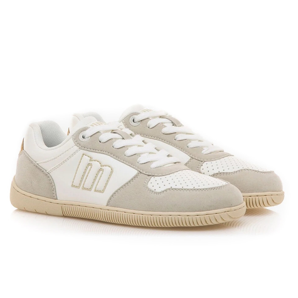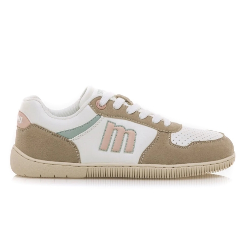 Zapatillas blancas para mujer modelo Free Aria de Mustang, con detalles en tonos beige y rosa. El logo Mustang en el lateral destaca en un tono pastel que añade un toque de originalidad. Diseñadas y desarrolladas especialmente en colaboración con el Dr. Juanjo López, traumatólogo deportivo, para respetar el desarrollo natural del pie. Se trata de un calzado minimalista que gracias a su puntera ancha, suela totalmente plana (cero drop) y flexibilidad, mejora la anatomía del pie y favorece una mejor posición del mismo. Se vende con una plantilla de transición para hacer el cambio de calzado convencional a minimalista de manera progresiva. Certificado por INESCOP como vegano, garantiza que en su fabricación no se han utilizado ningún material de origen animal.