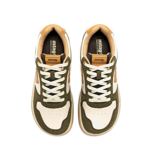 Zapatillas de color kaki para hombre de Mustang modelo Free Miami. Con una estética retro y urbana, esta zapatilla presenta una combinación de tonos verde, blanco y crema que aportan contraste y estilo. Diseñadas y desarrolladas especialmente en colaboración con el Dr. Juanjo López, traumatólogo deportivo, para respetar el desarrollo natural del pie. Se trata de un calzado minimalista que gracias a su puntera ancha, suela totalmente plana (cero drop) y flexibilidad, mejora la anatomía del pie y favorece una mejor posición del mismo. Se vende con una plantilla de transición para hacer el cambio de calzado convencional a minimalista de manera progresiva. Con certificado VEGANO sellado por INESCOP, el cual garantiza que la naturaleza química principal del material no se corresponde con fibras de origen animal.