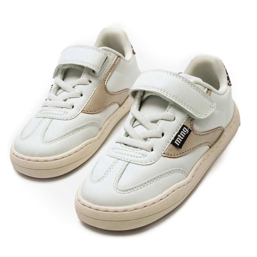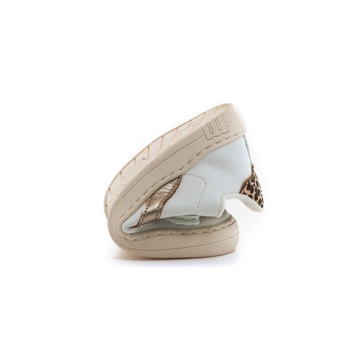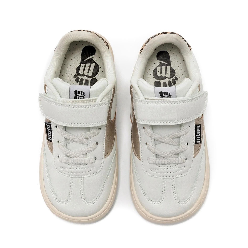 Zapatillas barefoot lavables de color blanco para niña, modelo Free de la marca Mustang, estilo urbano. Incorpora detalles metalizados dorados y talón con estampado animal print de leopardo que aportan un toque distintivo al diseño. El cierre adhesivo y los cordones garantizan un ajuste cómodo y práctico. Diseñado y desarrollado especialmente en colaboración con el Dr. Juanjo López, traumatólogo deportivo e infantil, para respetar el desarrollo natural del pie del niño y la niña. Gracias a su puntera ancha permite el libre movimiento de los dedos dentro del zapato. Las plantillas extraíbles facilitan comprobar si la talla del calzado es la correcta para tu hijo. Además, su fácil apertura facilita que el niño pueda descalzarse y calzarse de forma autónoma. Con certificado VEGANO sellado por INESCOP, el cual garantiza que la naturaleza química principal del material no se corresponde con fibras de origen animal.