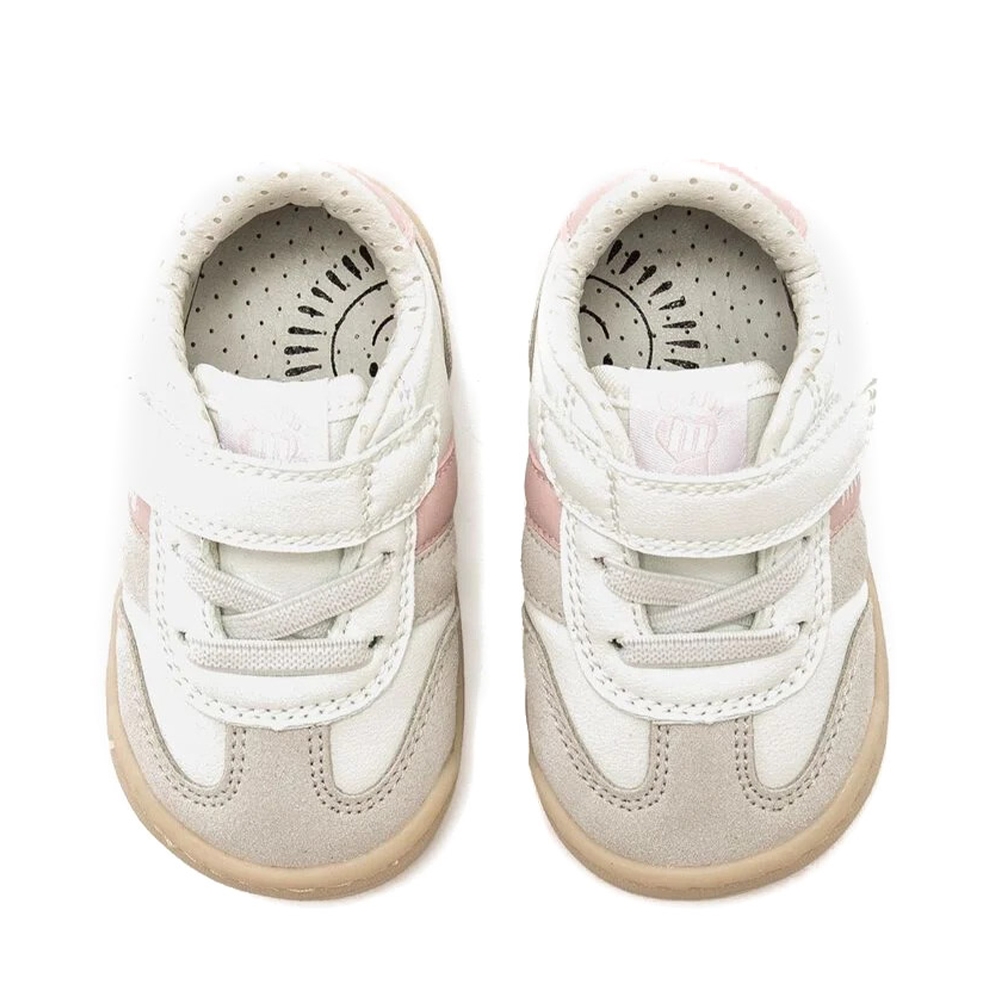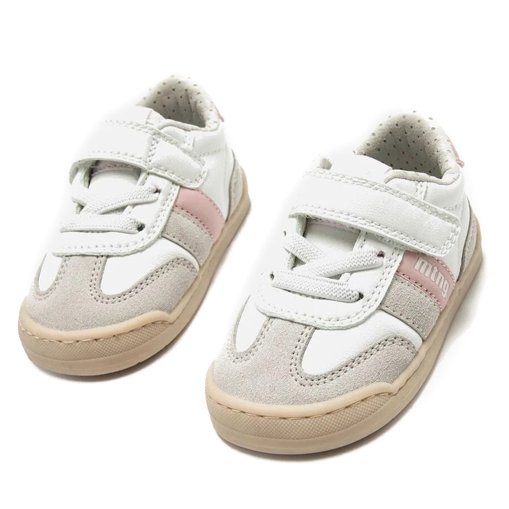 Zapatilla de color blanco para bebé modelo Free Baby de Mustang estilo deportivo. Este diseño combina detalles tipo ante grises y piezas en marino que contrastan con su suela marrón caramelo. Incorpora cierre adhesivo para un ajuste rápido. Diseñada y desarrollada especialmente en colaboración con el Dr. Juanjo López, traumatólogo deportivo e infantil, para respetar el desarrollo natural del pie de los niños. Gracias a su puntera ancha permite el libre movimiento de los dedos dentro del zapato. Su suela tiene 3 mm de grosor y con zero drop (totalmente plana) respeta el natural desarrollo del pie del pequeño y sus elementos flexibles y torsionables hace que el pie del niño no esté encorsetado por la estructura del zapato. Las plantillas extraíbles facilitan comprobar si la talla del calzado es la correcta para tu hijo. Además, su fácil apertura facilita que el niño pueda descalzarse y calzarse de forma autónoma. Con certificado VEGANO sellado por INESCOP, el cual garantiza que la naturaleza química principal del material no se corresponde con fibras de origen animal.