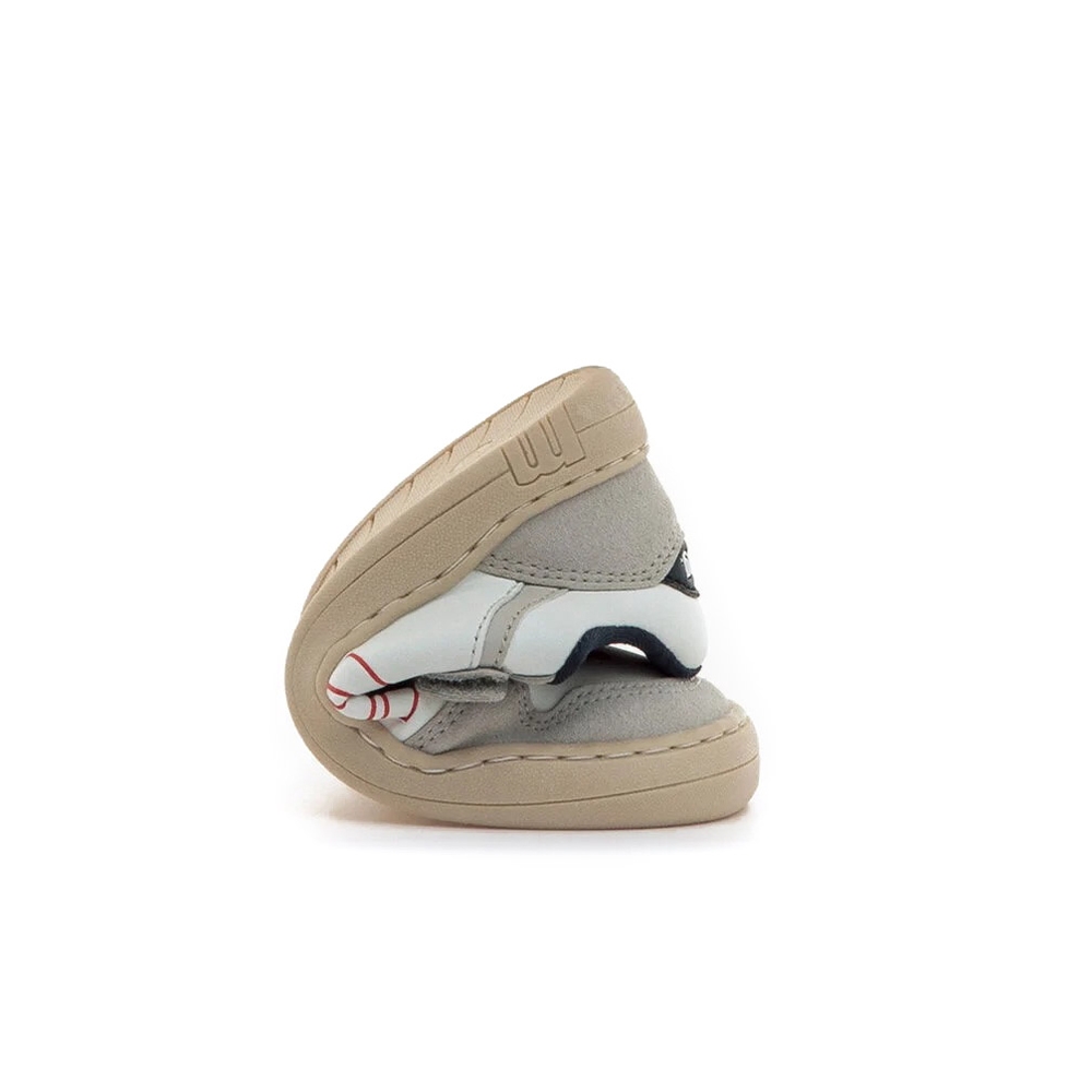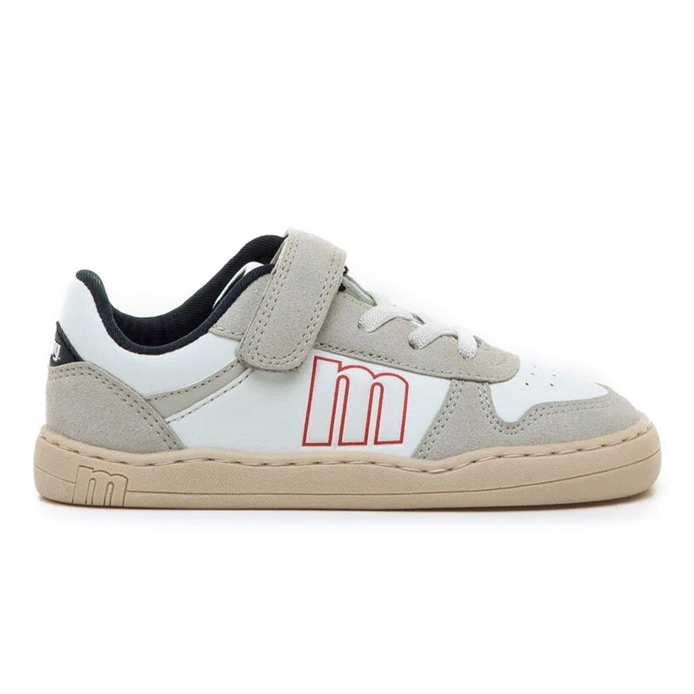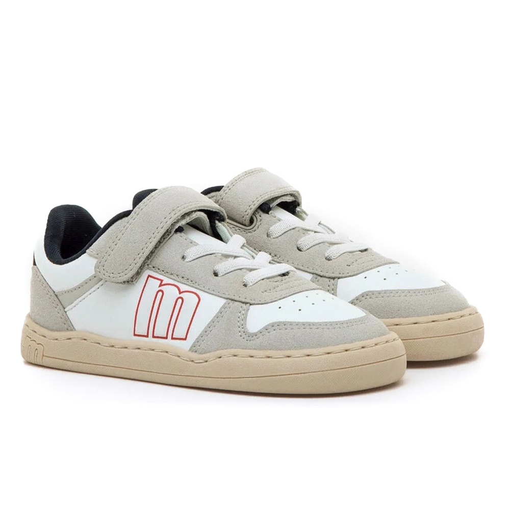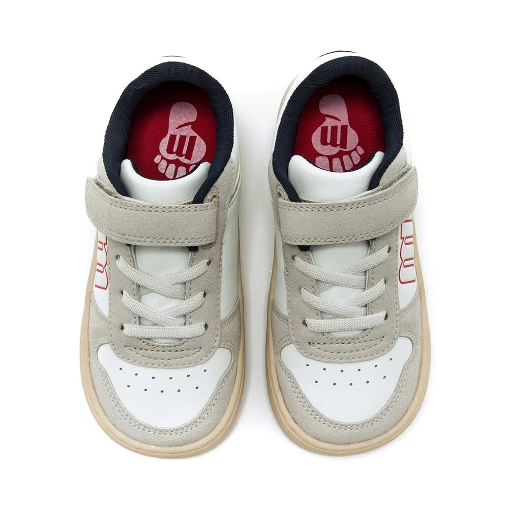 Zapatillas barefoot de Mustang para niños, modelo Free estilo deportivo de color blanco y gris. El cierre adhesivo y los cordones aseguran un ajuste fácil y estable. Los detalles en gris, el logo lateral en rojo y el talón en azul marino aportan un toque moderno. Diseñado y desarrollado especialmente en colaboración con el Dr. Juanjo López, traumatólogo deportivo e infantil, para respetar el desarrollo natural del pie del niño y la niña. Gracias a su puntera ancha permite el libre movimiento de los dedos dentro del zapato. Las plantillas extraíbles facilitan comprobar si la talla del calzado es la correcta para tu hijo. Además, su fácil apertura facilita que el niño pueda descalzarse y calzarse de forma autónoma. Con certificado VEGANO sellado por INESCOP, el cual garantiza que la naturaleza química principal del material no se corresponde con fibras de origen animal.