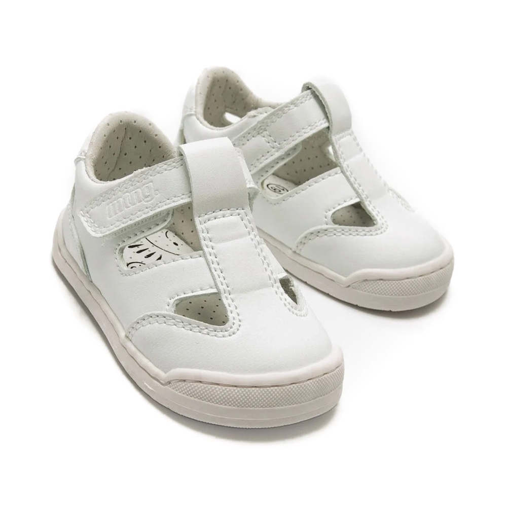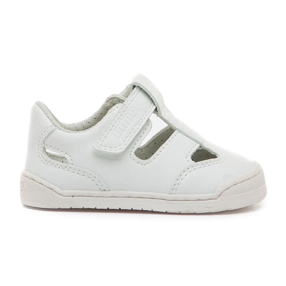 Sandalia barefoot de color blanco para bebé, modelo Free Baby de la marca Mustang, estilo casual. Su diseño ligero con aperturas laterales aporta ventilación sin perder protección. El cierre con tira adhesiva permite un ajuste fácil y rápido. Diseñada y desarrollada especialmente en colaboración con el Dr. Juanjo López, traumatólogo deportivo e infantil, para respetar el desarrollo natural del pie de los niños. Gracias a su puntera ancha permite el libre movimiento de los dedos dentro del zapato. Su suela tiene 3 mm de grosor y con zero drop (totalmente plana) respeta el natural desarrollo del pie del pequeño y sus elementos flexibles y torsionables hace que el pie del niño no esté encorsetado por la estructura del zapato. Las plantillas extraíbles facilitan comprobar si la talla del calzado es la correcta para tu hijo. Además, su fácil apertura facilita que el niño pueda descalzarse y calzarse de forma autónoma. Acompaña los primeros pasos de tu bebé con Mustang. Con certificado VEGANO sellado por INESCOP, el cual garantiza que la naturaleza química principal del material no se corresponde con fibras de origen animal.