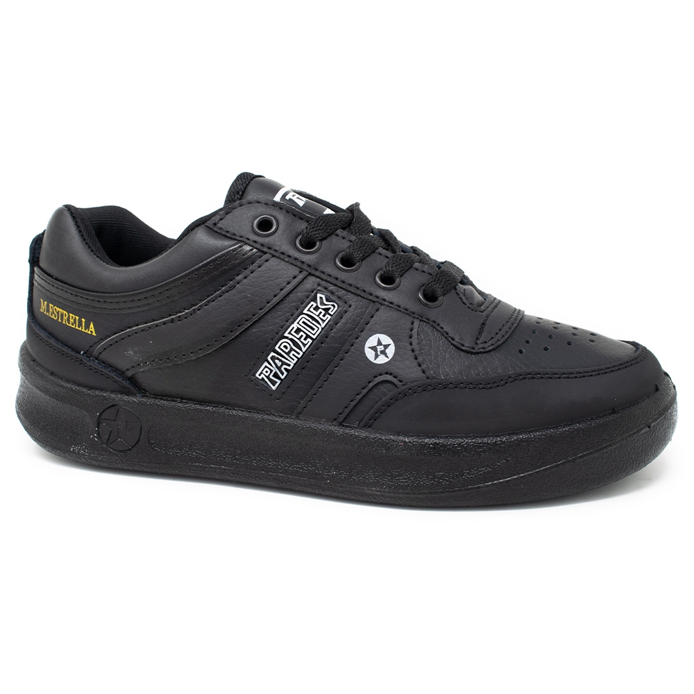 Calzado clásico de piel grabada en color negro con adornos en serraje. Cierre con cordones. Este modelo por sus características es uno de los más vendidos, con miles de usuarios satisfechos gracias a sus características: FLEXIBILIDAD Suela de poliuretano que amortigua la pisada y consigue máxima ligereza y flexibilidad. HORMA ANCHA Zona de pisada anatómica que reproduce la forma del pie desnudo. TRANSPIRABLE Las perforaciones en el corte del zapato facilitan la transpiración del pie.