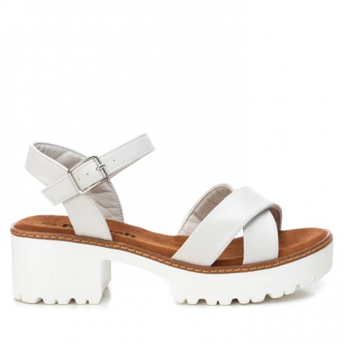 Sandalia de mujer con tacón de goma de 5 cm de alto, de la marca Refresh. Fabricada en material que imita a la piel. Pulsera con hebilla metalizada para ajustar al tobillo. Con un cómodo tacón con plataforma de goma para que sientas la comodidad allá donde vayas. Este modelo ha obtenido el certificado vegano por la organización mundial PETA (Organización de los derechos de los animales).