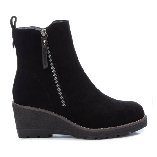 Botín de mujer, de la marca Refresh. Fabricado en antelina. Cierre mediante cremallera lateral. Tirador trasero para facilitar la puesta. Cremallera lateral decorativa. Cómoda cuña de 6 cm con suela de goma antideslizante. Este modelo ha obtenido el certificado vegano por la organización mundial PETA (Organización de los derechos de los animales).