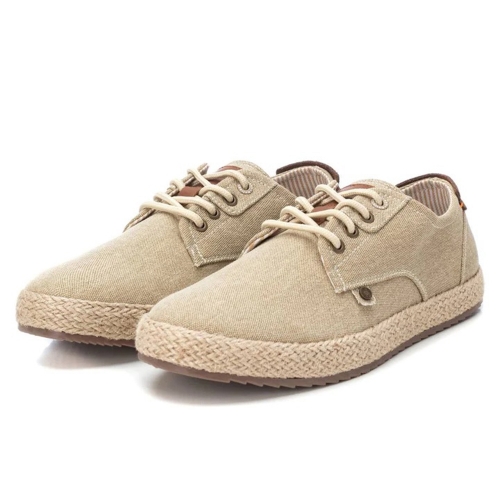 Zapatilla de hombre, de la marca Refresh. Fabricada en lona con acabado desgastado. Cierre mediante cordones ajustables. Forro con print decorativo. Piso forrado en yute trenzado con suela de goma antideslizante. Un modelo imprescindible este verano. Este modelo ha obtenido el certificado vegano por la organización mundial PETA (Organización de los derechos de los animales).