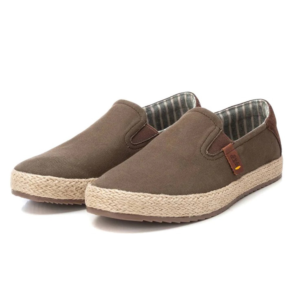 Zapatilla de hombre, de la marca Refresh. Fabricada en lona con acabado desgastado. Cierre mediante cordones ajustables. Forro con print decorativo. Piso forrado en yute trenzado con suela de goma antideslizante. Un modelo imprescindible este verano. Este modelo ha obtenido el certificado vegano por la organización mundial PETA (Organización de los derechos de los animales).