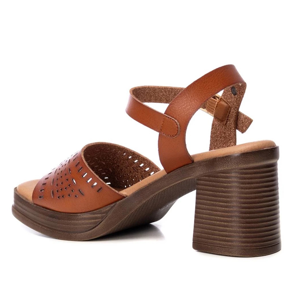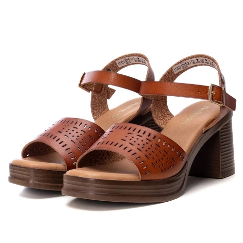 Sandalia de mujer, de la marca Refresh. Fabricada en material que imita a la piel. Pala troquelada. Pulsera con hebilla para ajustar al tobillo. Sandalia destalonada con tacón de 7 cm en acabado madera. Este modelo ha obtenido el certificado vegano por la organización mundial PETA (Organización de los derechos de los animales).