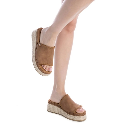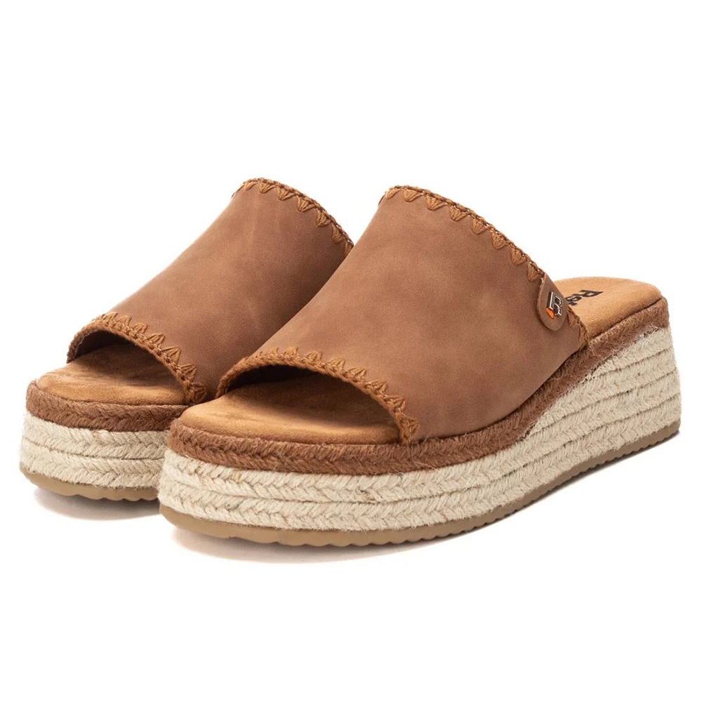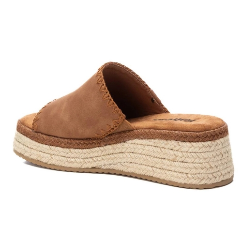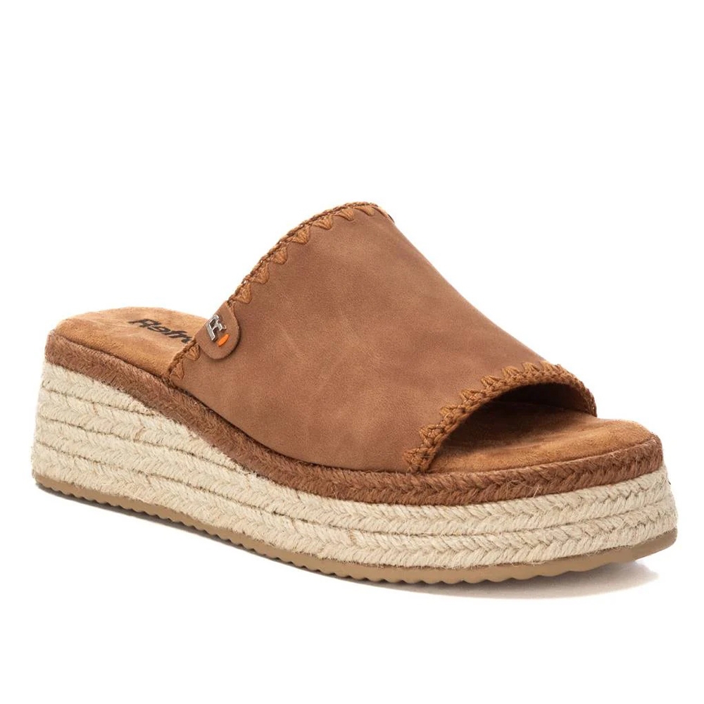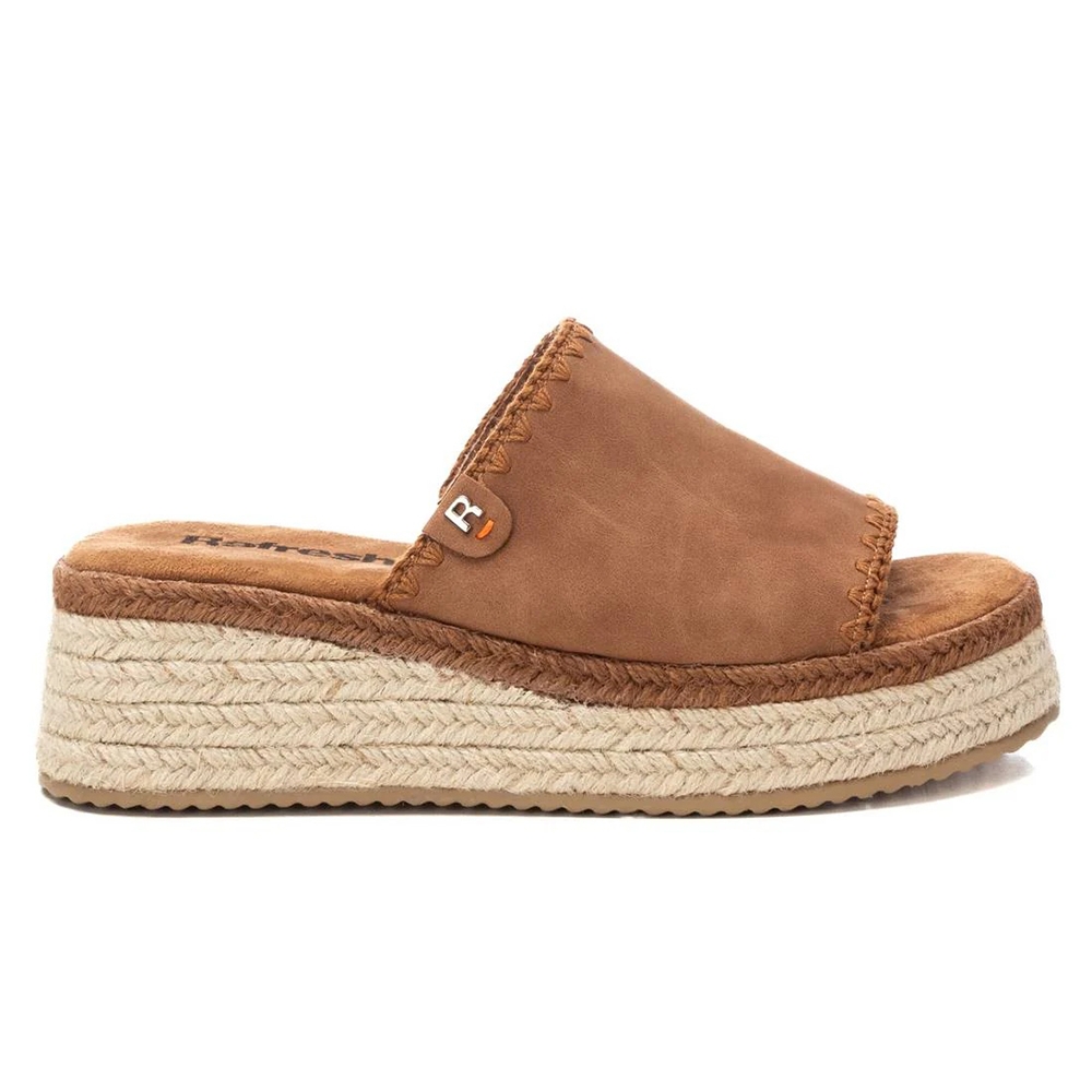 Sandalia de mujer, de la marca Refresh. Fabricada en material que imita a la piel. Sandalia de pala ancha destalonada. Cómoda planta acolchada. Plataforma de 6 cm recubierta con tiras de yute. Suela de goma antideslizante. Este modelo ha obtenido el certificado vegano por la organización mundial PETA (Organización de los derechos de los animales).