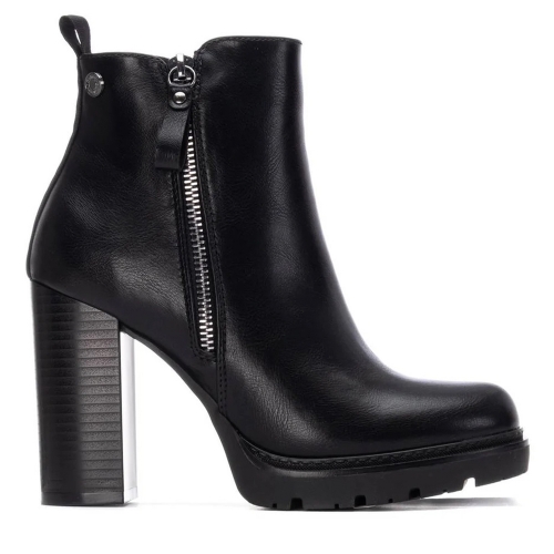 Botín de mujer, de la marca Refresh. Fabricado en material que imita a la piel. Cremallera lateral decorativa. Cierre mediante cremallera interior. Tirador trasero para facilitar la puesta. Suela de goma antideslizante. Tacón de 10 cm. Un Botín versátil para completar tus looks esta temporada. Este modelo ha obtenido el certificado vegano por la organización mundial PETA (Organización de los derechos de los animales).