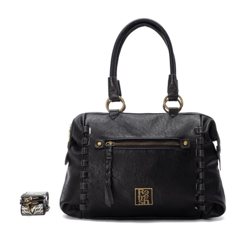 Bolso de mujer de la marca Refresh. Fabricado en material que imita la piel. Con cierre mediante cremallera y 5 bolsillos para una máxima organización de tus pertenencias. Con asa regulable opcional, tipo bandolera. Medidas: 25 x 32 x 13 cm. Este modelo ha obtenido el certificado vegano por la organización mundial PETA (Organización de los derechos de los animales).